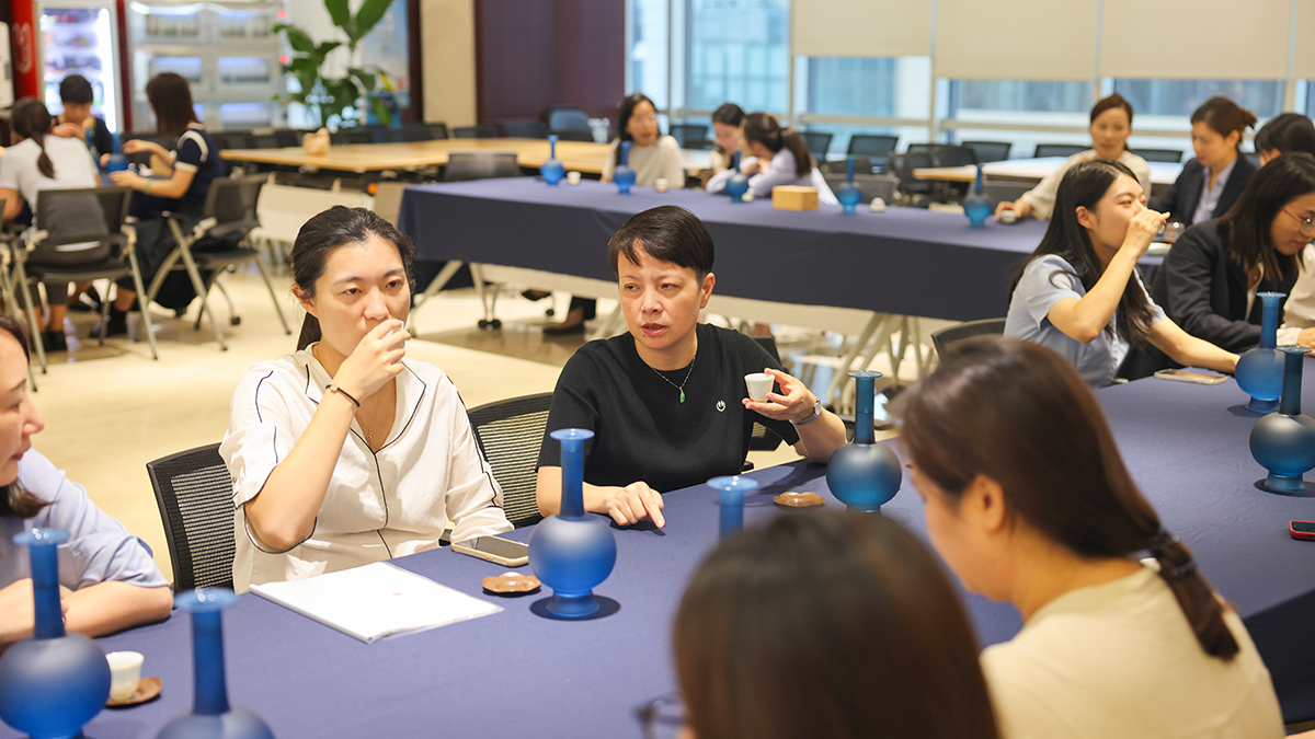 活動(dòng)伊始,曾獲“2021年浙江工匠”稱號(hào)的國(guó)家一級(jí)茶藝技師朱曉麗老師帶領(lǐng)大家品鑒桂花九曲紅梅,從欣賞干茶、溫杯潔具,到投茶潤(rùn)茶、沖泡茶湯,最后敬奉香茗、品飲甘茶。