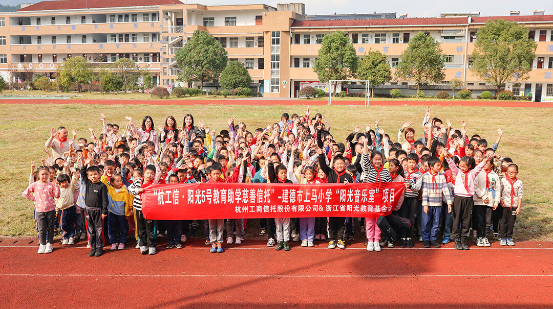 浙江省陽(yáng)光教育基金會(huì)“杭工信·陽(yáng)光5號(hào)教育助學(xué)慈善信托”音樂(lè)器材捐贈(zèng)儀式在建德市上馬小學(xué)舉行。