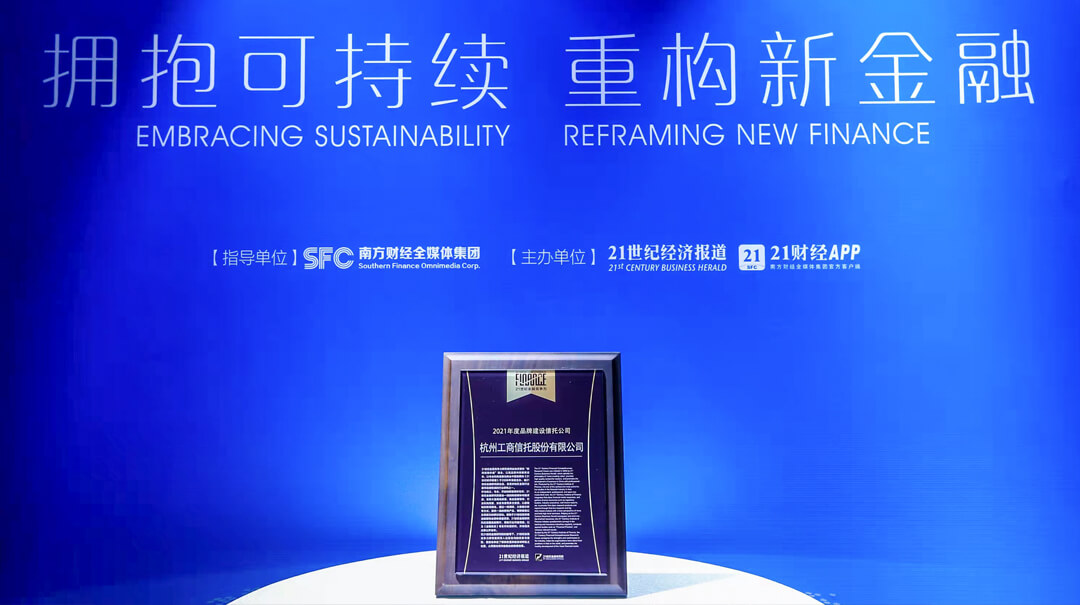 杭州工商信托榮獲“2021年度品牌建設(shè)信托公司”獎(jiǎng)