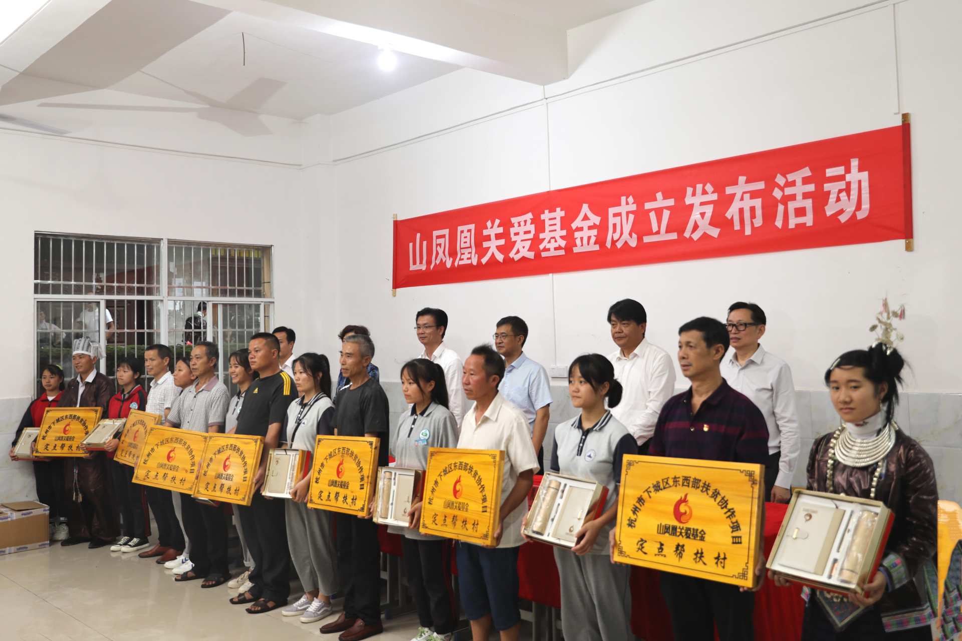 為 “山鳳凰關(guān)愛基金”定點(diǎn)幫扶村的女生代表授牌并贈(zèng)送禮物