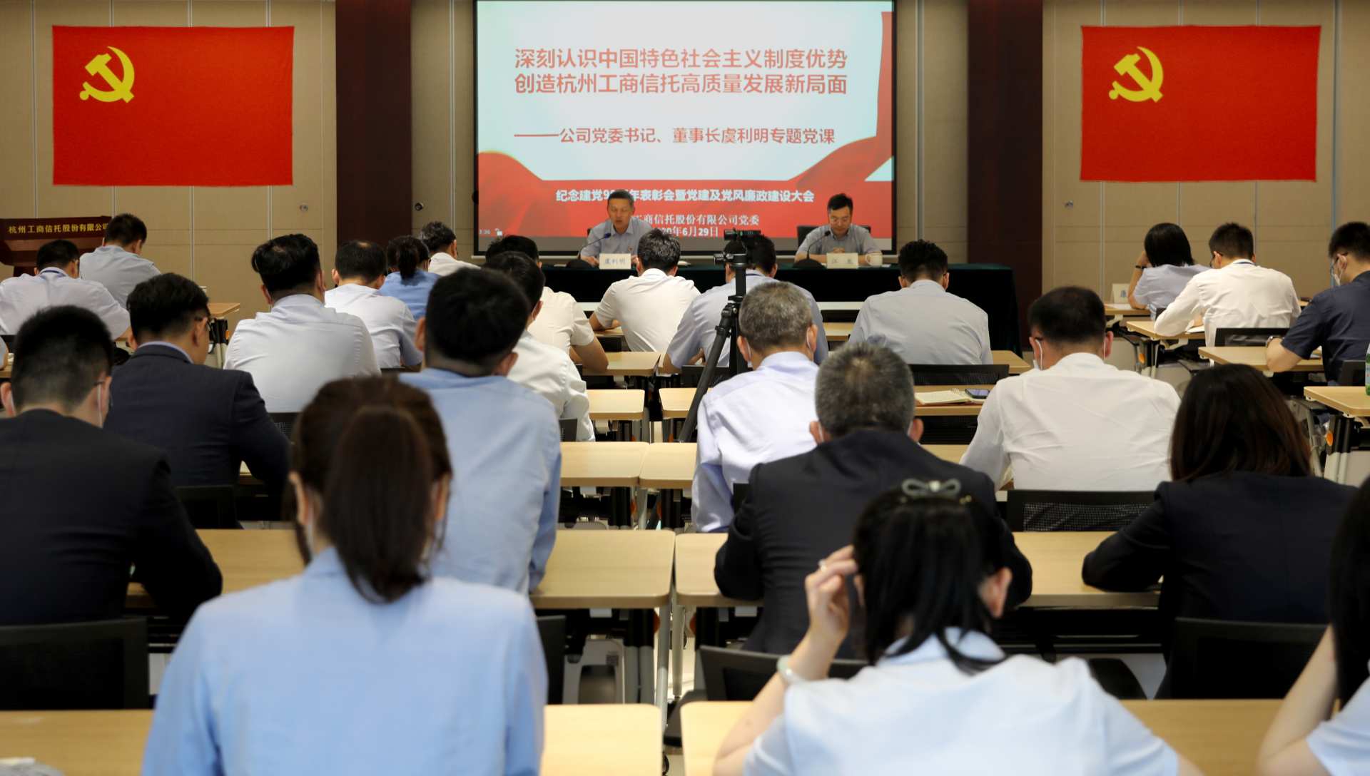 2020年6月29日,杭州工商信托公司召開(kāi)紀(jì)念建黨99周年表彰會(huì)暨黨建及黨風(fēng)廉政建設(shè)大會(huì)。公司領(lǐng)導(dǎo)班子成員、全體黨員參加會(huì)議。