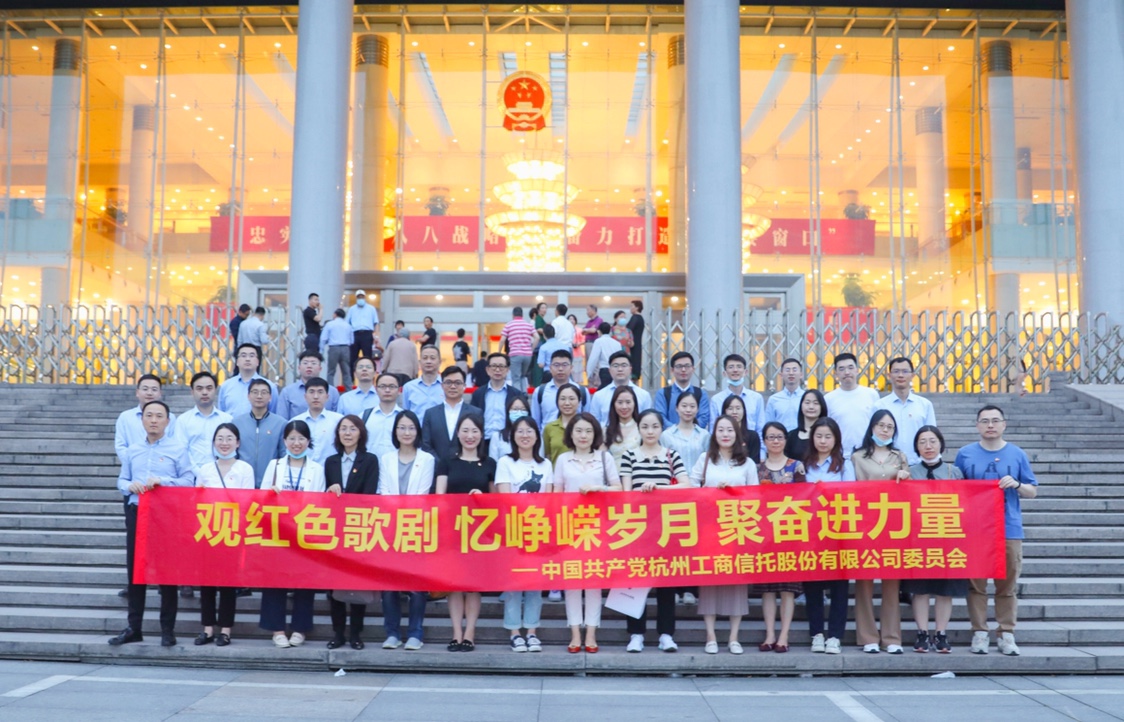 2021年5月25日,杭州工商信托黨委開展 “觀紅色歌劇 憶崢嶸歲月 聚奮進(jìn)力量”觀劇活動,組織黨員前往省人民大會堂觀看大型紅色歌劇《江姐》,