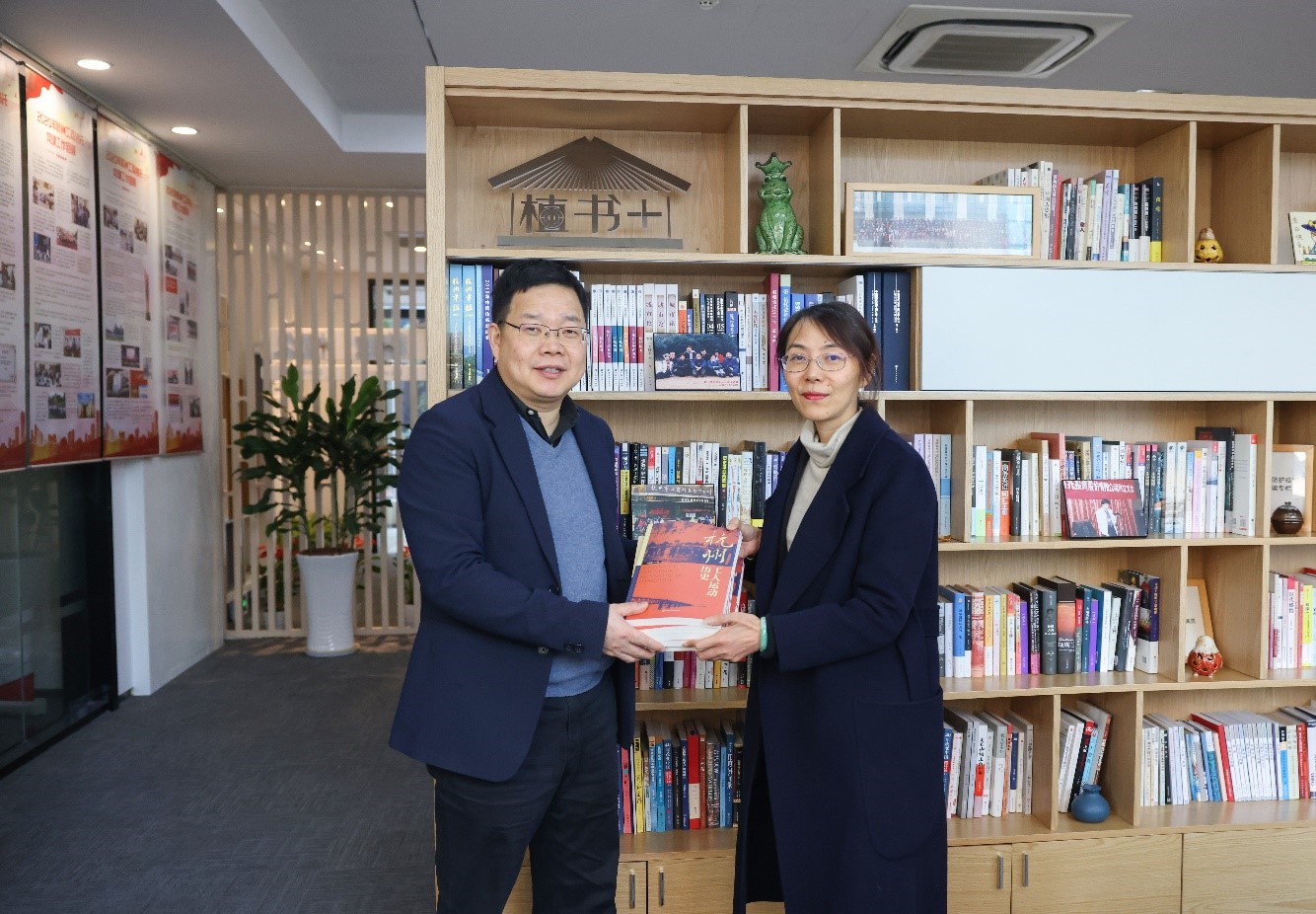 王衛(wèi)安副主席向杭州工商信托“市工會(huì)職工書(shū)屋”贈(zèng)送《杭州工人運(yùn)動(dòng)歷史》叢書(shū)