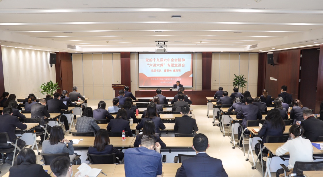 按照中央、省委、市委和金投集團(tuán)黨委關(guān)于學(xué)習(xí)宣傳貫徹黨的十九屆六中全會(huì)精神的部署要求,為推動(dòng)“六講六做”大宣講落到實(shí)處、引向深處,扎實(shí)推進(jìn)黨史學(xué)習(xí)教育,12月8日下午,杭州工商信托黨委召開學(xué)習(xí)貫徹黨的十九屆六中全會(huì)精神“六講六做”專題宣講會(huì),公司黨委書記、董事長虞利明作專題宣講。本次宣講會(huì)采用現(xiàn)場及視頻的形式同步進(jìn)行,黨委委員、總監(jiān)徐惠鋒主持會(huì)議,公司領(lǐng)導(dǎo)班子成員、全體黨員、共青團(tuán)員、員工代表參加會(huì)議。