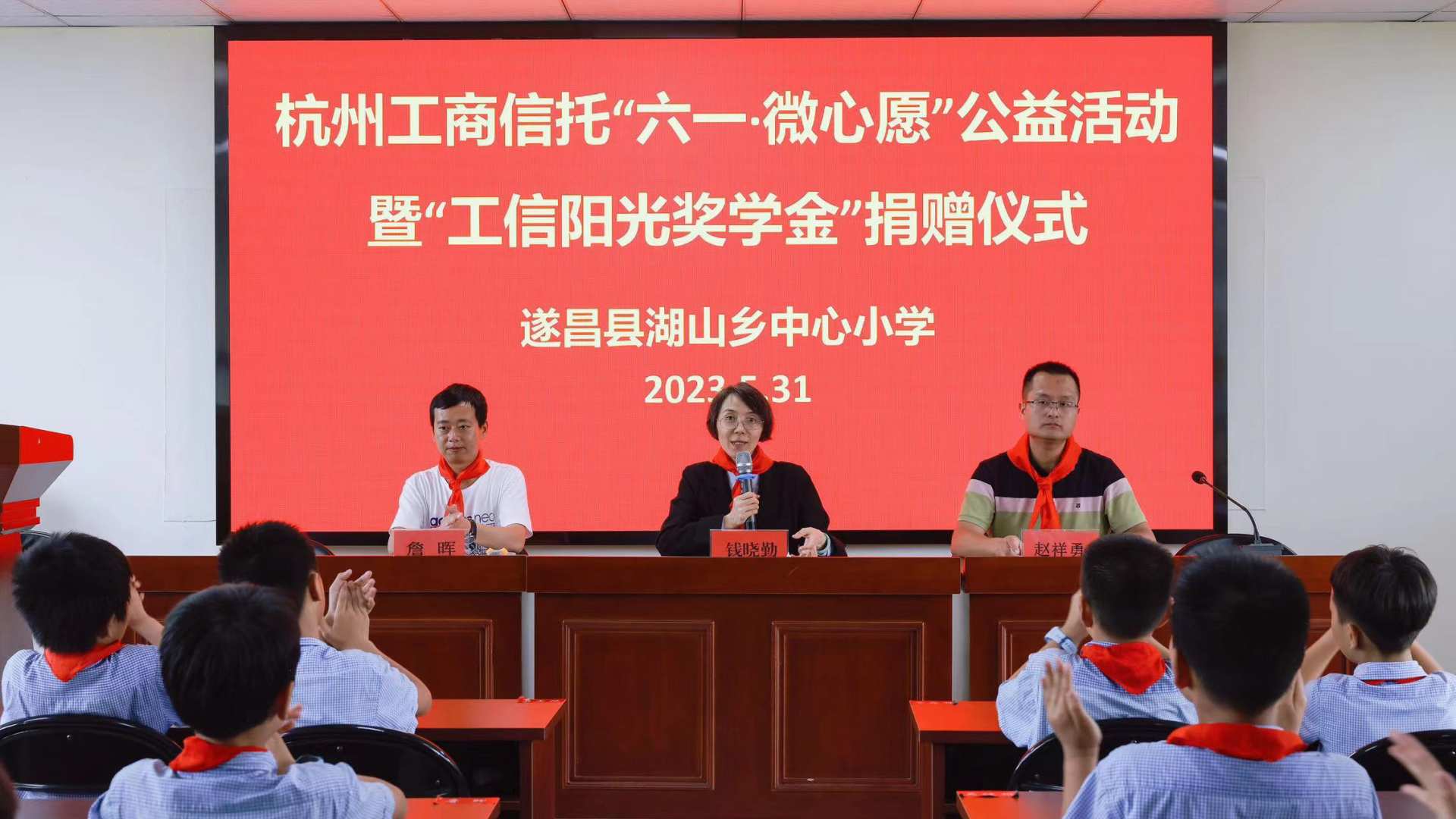 活動中,湖山鄉(xiāng)中心小學(xué)校長趙祥勇表示:“其實(shí)從2016年開始,每一年,我們的孩子都能收到自己的兒童節(jié)禮物。特別是去年,設(shè)立的陽光獎學(xué)金,給學(xué)業(yè)成績、體藝比賽優(yōu)異的孩子們給予獎勵。你們的愛心活動,給我校師生帶來的不僅是經(jīng)濟(jì)上、物質(zhì)上的幫助,更重要的是精神上的鼓舞;既為孩子們的‘六一’增加了一份快樂,又為全校學(xué)生上了一堂生動的愛心教育課。”