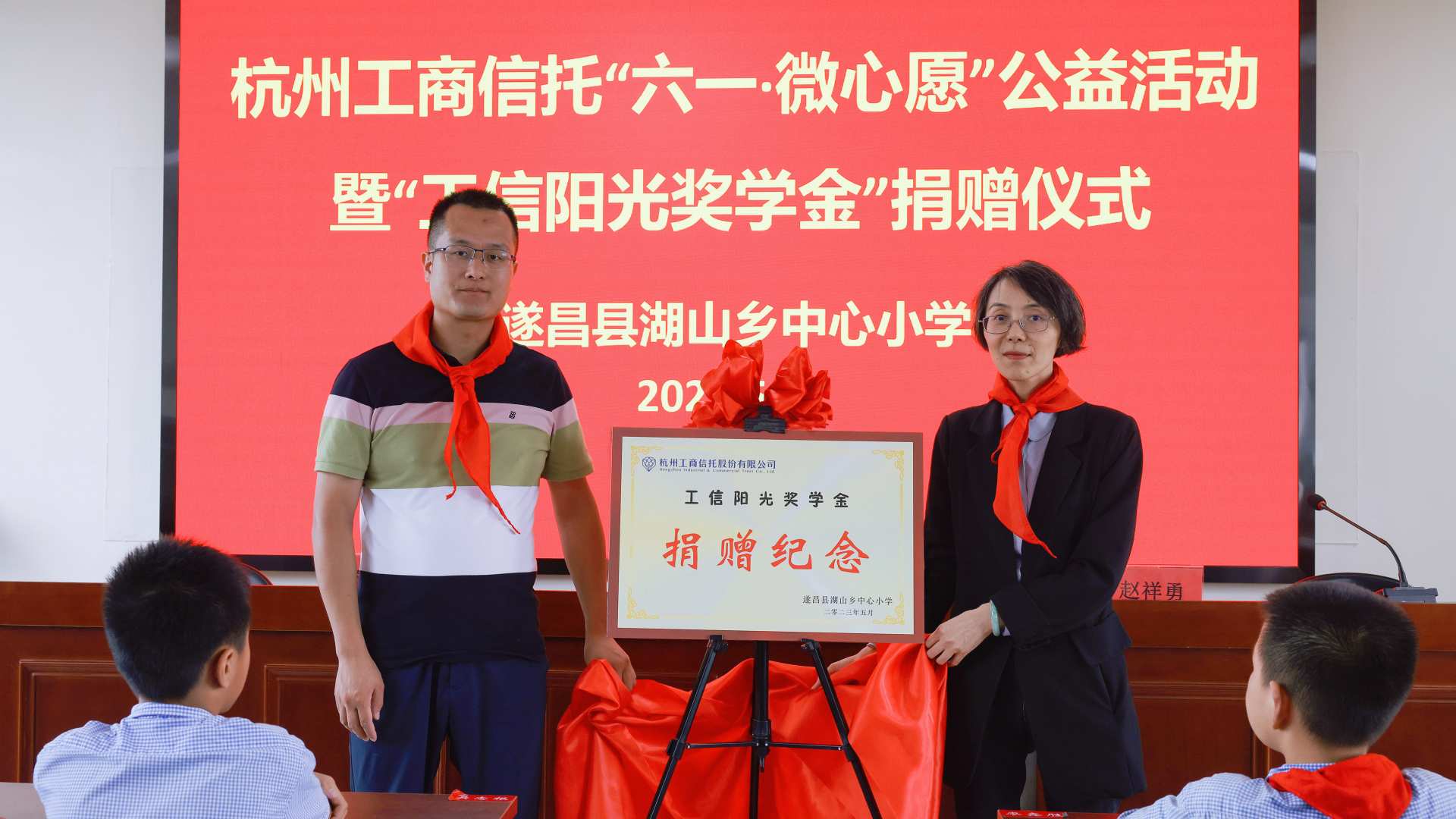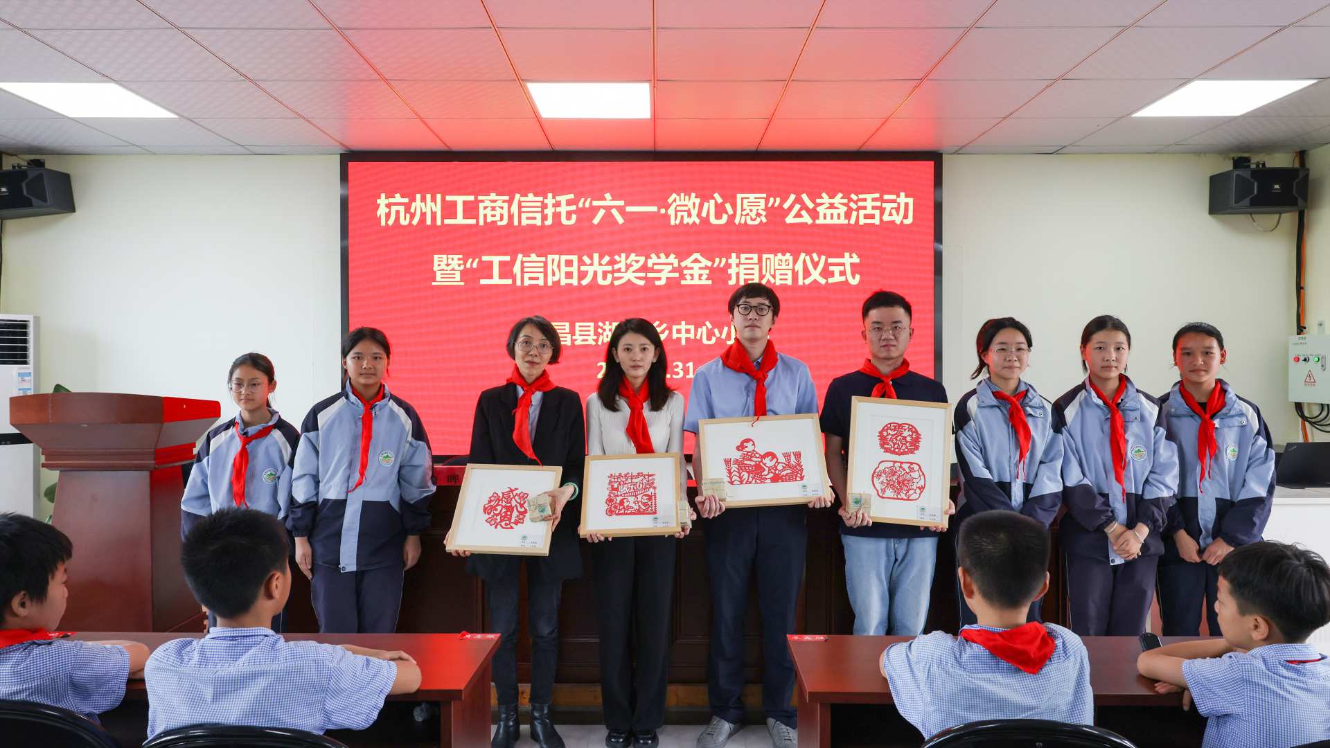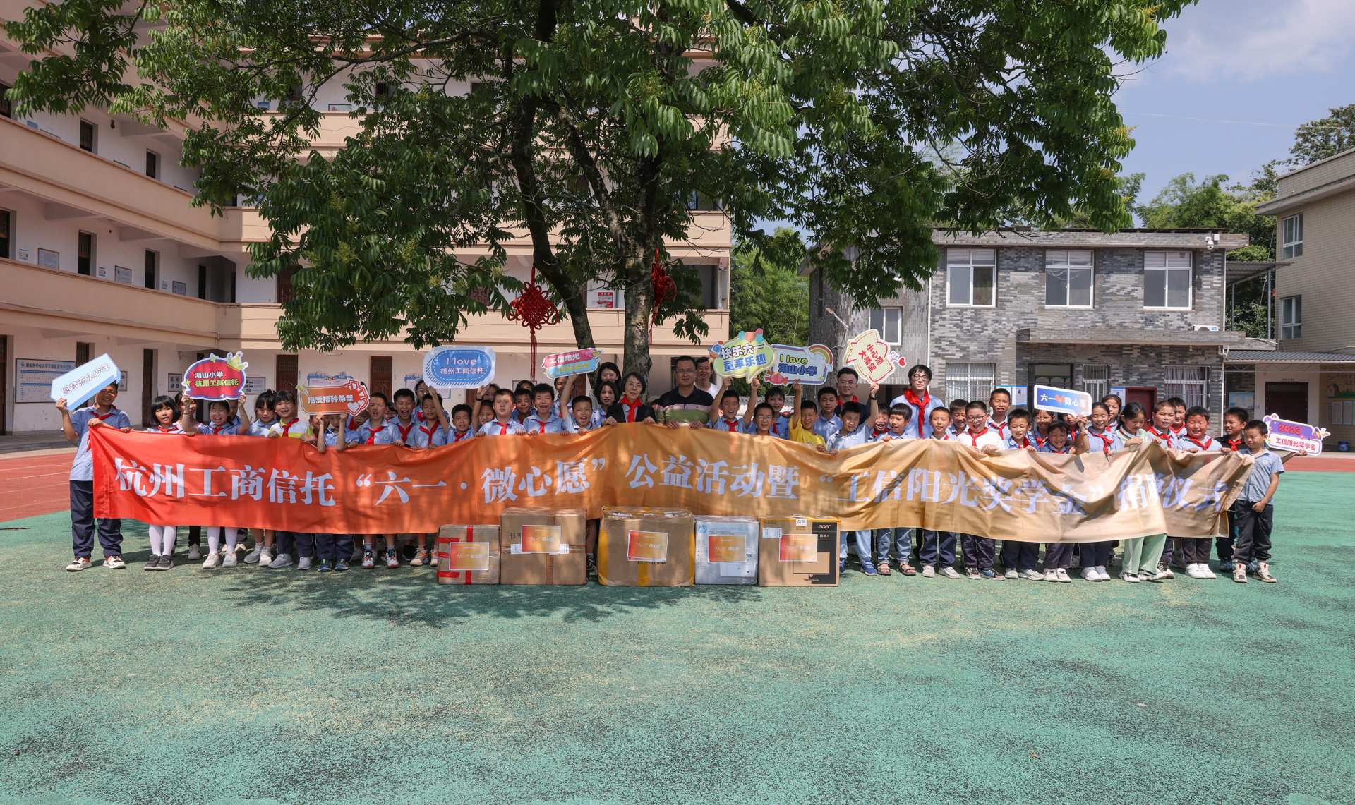 “今年是我們共同歡度的第八個兒童節(jié)了。除了給大家?guī)砹诵《Y物,在節(jié)日里滿足你們的一份小小心愿外,還帶來了電腦、打印機(jī)等設(shè)備 。同時(shí),‘工信陽光獎學(xué)金’今年依舊根據(jù)同學(xué)們的考試成績以及體育藝術(shù)方面比賽的成績等情況發(fā)放,希望同學(xué)們通過自己的努力,都能站上領(lǐng)獎臺!”杭州工商信托黨委委員、總監(jiān)錢曉勤說到。