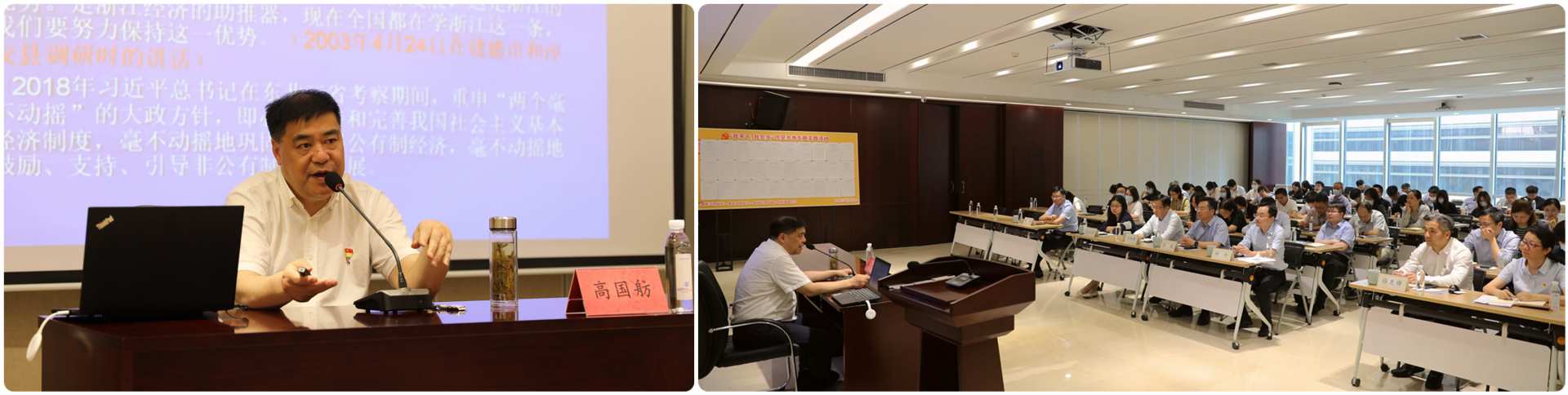 會議邀請杭州市委黨校副校長高國舫教授為全體參會人員作《殷切的期望——學(xué)習(xí)習(xí)近平同志對浙江工作的指示》專題授課。高教授緊扣習(xí)近平總書記在主題教育工作會議上的重要講話精神,圍繞習(xí)近平總書記對浙江經(jīng)濟(jì)建設(shè)、政治建設(shè)、文化建設(shè)、社會建設(shè)、生態(tài)文明建設(shè)等方面的期望,緊密結(jié)合本地實(shí)際案例,作了深入淺出的講解,讓參會人員對習(xí)近平總書記重要指示精神有了更深入的學(xué)習(xí)和領(lǐng)會,為公司扎實(shí)推動主題教育提供了專業(yè)的理論指導(dǎo)。