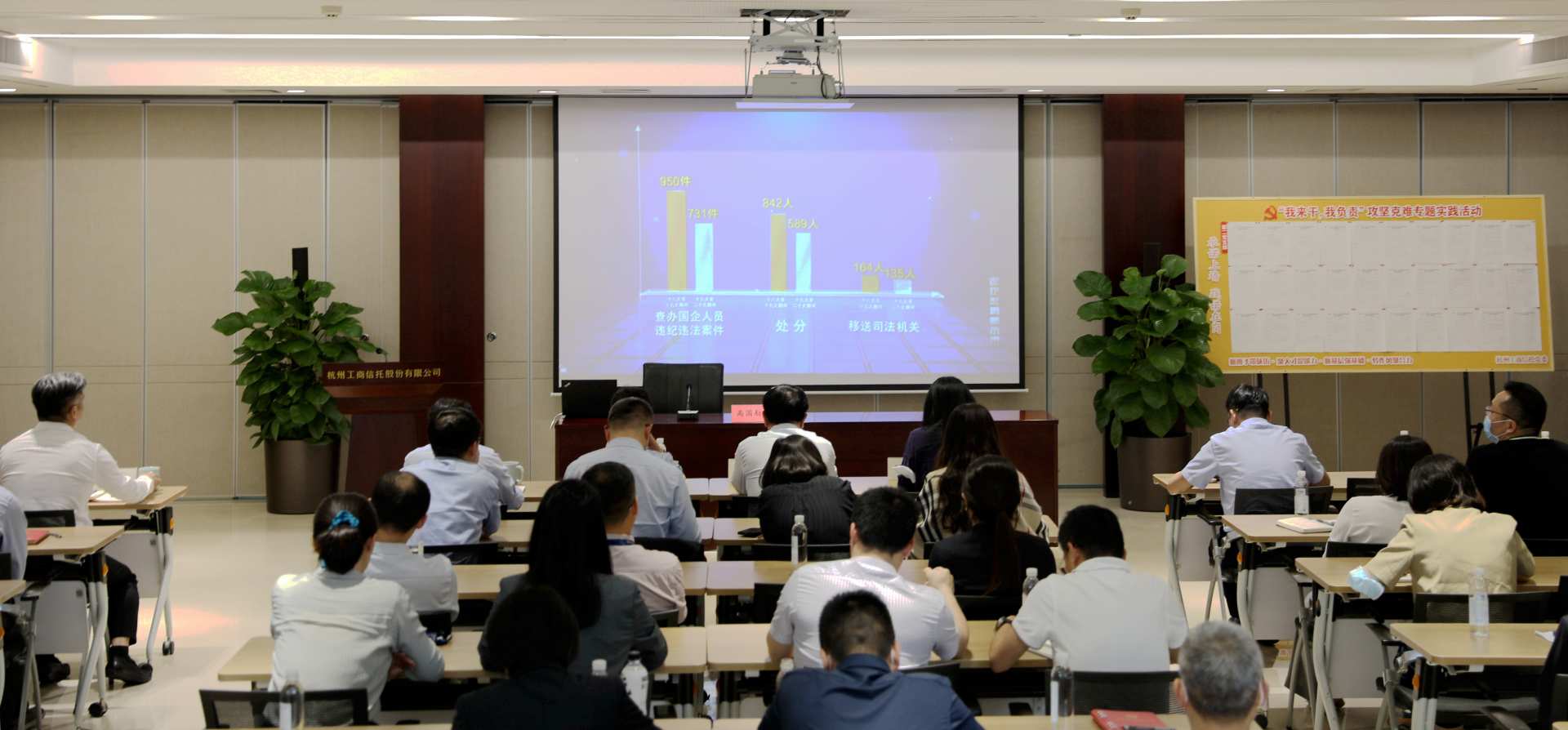 為深入貫徹落實(shí)黨的二十大精神和習(xí)近平總書記對浙江作出的系列重要講話指示批示精神,錘煉“忠誠、干凈、擔(dān)當(dāng)”的干部隊(duì)伍,5月31日,杭州工商信托開展學(xué)習(xí)貫徹習(xí)近平新時代中國特色社會主義思想主題教育專題黨課暨廉潔警示教育活動。公司黨政領(lǐng)導(dǎo)班子成員、全體黨員、中層管理人員、統(tǒng)戰(zhàn)人員等參加會議,異地部門以視頻方式參會。
