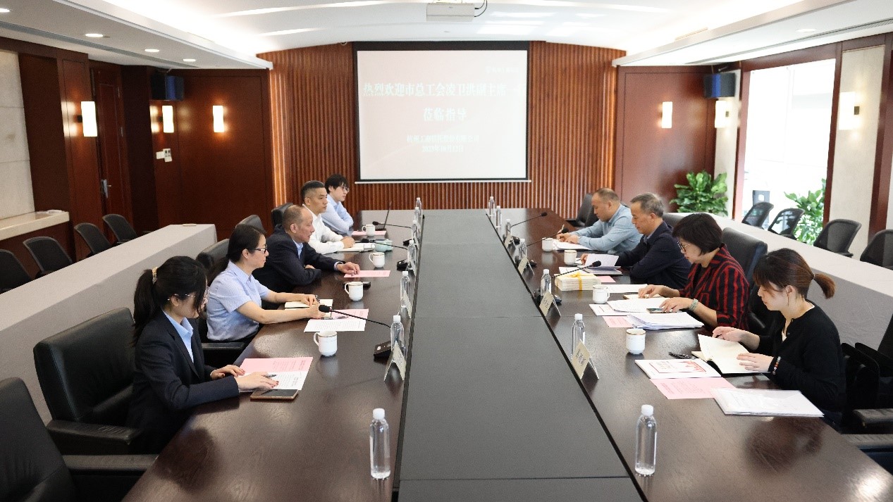 10月12日上午,杭州市總工會黨組成員、副主席凌衛(wèi)洪,市金融工會主任楊曉紅、副主任楊秀元一行蒞臨杭州工商信托,宣傳貫徹《習近平關(guān)于工人階級和工會工作論述摘編》和中國工會十八大精神,并調(diào)研指導公司工會構(gòu)建新時代和諧關(guān)系建設(shè)工作。公司黨委書記、董事長余南軍,工會主席徐惠鋒、綜合部(黨群工作部)負責人等有關(guān)人員陪同交流。