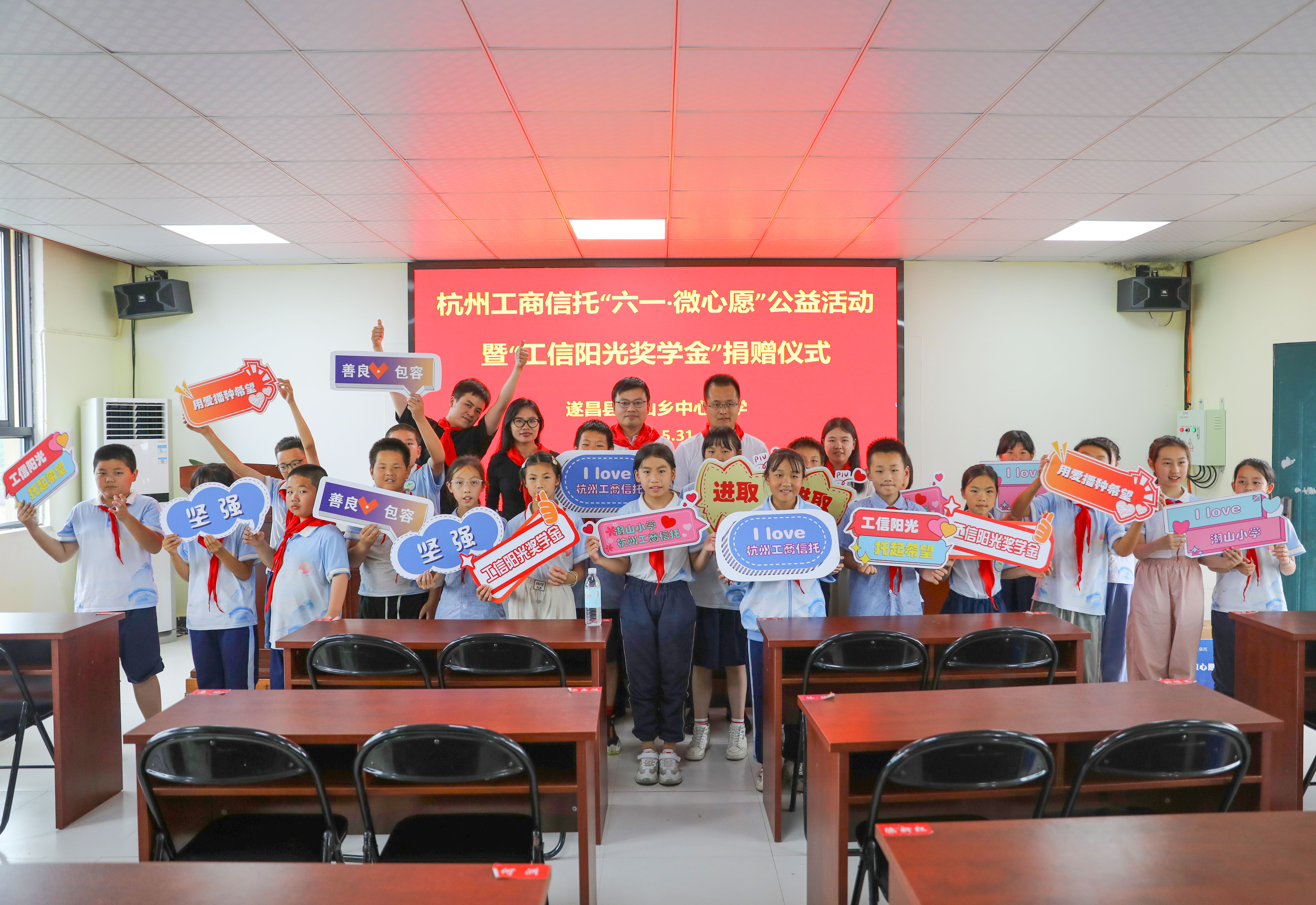 5月31日,杭州工商信托黨政工團(tuán)代表帶著滿滿的愛(ài)心和精心準(zhǔn)備的兒童節(jié)禮物,前往麗水市遂昌縣湖山鄉(xiāng)中心小學(xué),開(kāi)啟一期一會(huì)的“六一·微心愿”公益活動(dòng)。