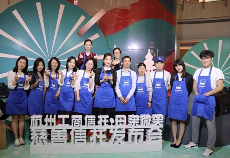 杭州工商信托副總裁康波作為代表將當(dāng)天愛心義賣所募集到的善款捐給母親微笑行動,并與他們合影