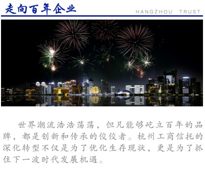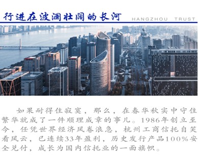 2003年重新登記以來,杭州工商信托以前瞻性的戰(zhàn)略意識確定了清晰的格局定位,通過實施以分散投資為核心的基金化策略和私募金融工具為目標資產的投資策略,成為業(yè)內最早確立資產管理業(yè)務方向、成功實現業(yè)務轉型的信托公司之一,并以開拓創(chuàng)新的進取風格,始終保持高頻率、高質量的產品創(chuàng)新和技術創(chuàng)新,贏得了客戶與社會的認可。