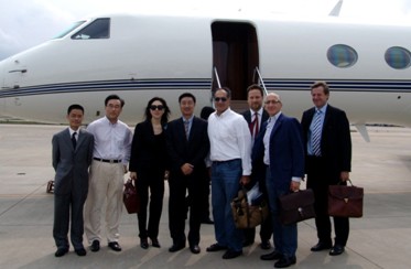 2007年6月,摩根士丹利董事長約翰.麥克(John Mack)一行乘專機抵達杭州,公司高管與摩根士丹利高管合影。