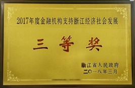 2018年6月,公司被浙江省人民政府授予“2017年度金融機構支持浙江經濟社會發(fā)展三等獎”。