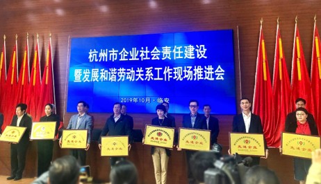 10月28日上午,杭州市企業(yè)社會責(zé)任建設(shè)暨發(fā)展和諧勞動關(guān)系工作現(xiàn)場推進(jìn)會在臨安召開,杭州工商信托榮獲“浙江省創(chuàng)建和諧勞動關(guān)系暨雙愛活動先進(jìn)企業(yè)代表”稱號。本次大會旨在通過表彰先進(jìn)、樹立典型,在全社會大力弘揚“企業(yè)關(guān)愛職工、職工熱愛企業(yè)”的和諧文化,引導(dǎo)企業(yè)自覺踐行社會責(zé)任、促進(jìn)勞動關(guān)系和諧穩(wěn)定及企業(yè)持續(xù)健康發(fā)展。